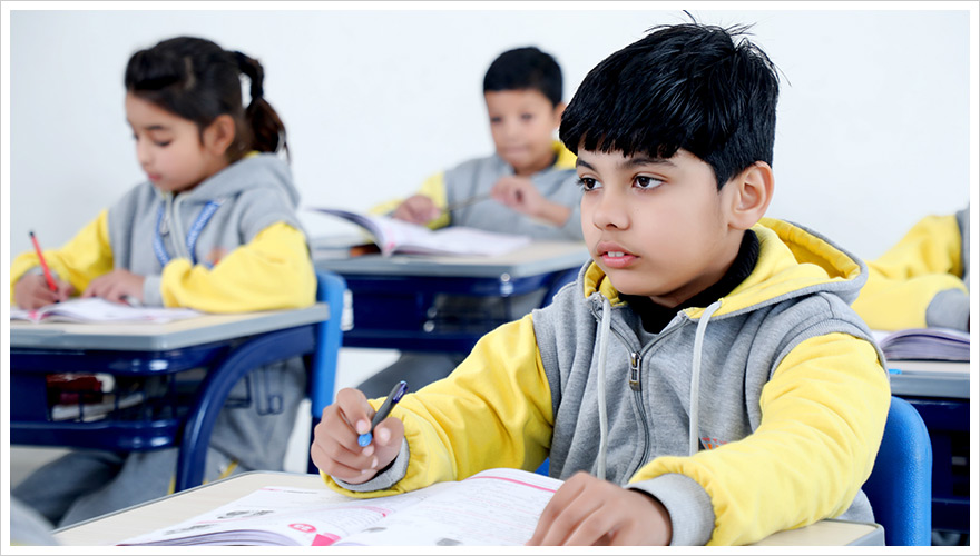 Learning Spaces around the school have been thoughtfully designed to stimulate learning. Our modern, well-lit classrooms have a spacious feel with high ceilings, wide doors and windows that allow adequate natural light. Every classroom is a digitally equipped room for interactive learning with a projector, mirroring devices and whiteboards that enable the teacher to suitably plan their lessons to meet our visual, auditory, and kinesthetic learners’ specific needs.